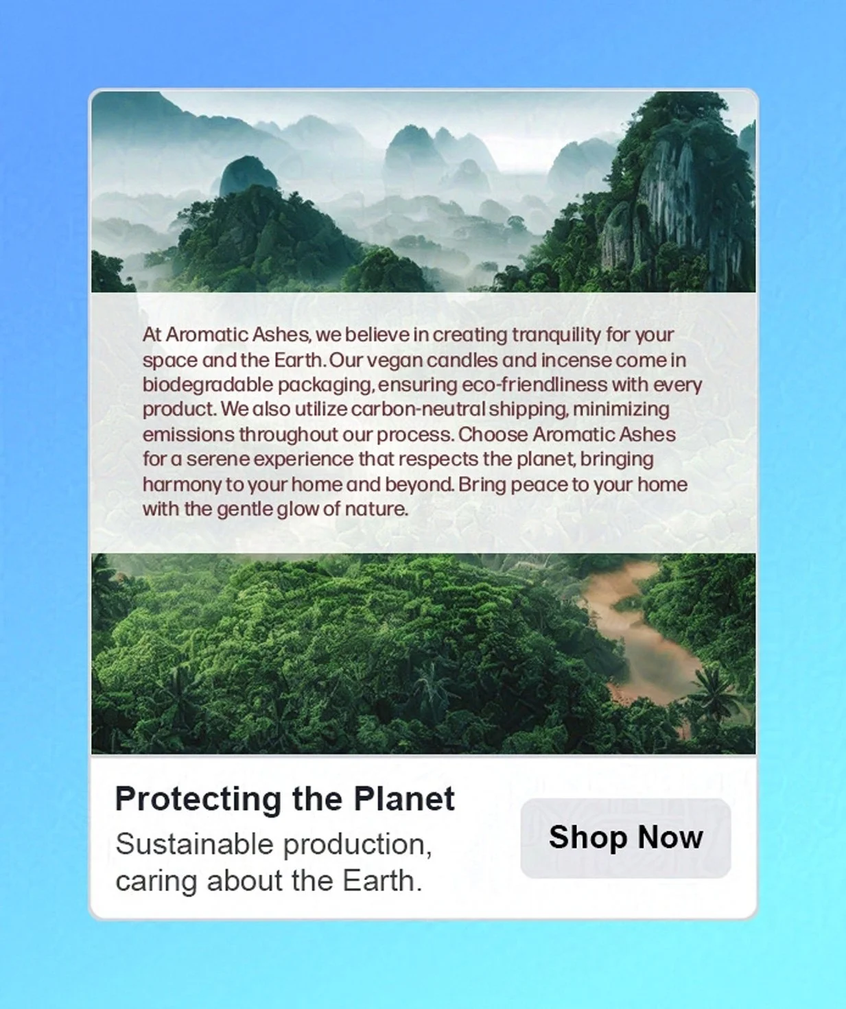 Aromatic Ashes wants to remind us that enjoying a lovely-smelling product doesn’t have to involve exploitation. It emphasizes that everyone deserves a pleasant-scented environment. Immerse yourself in delightful aromas and find your new favorite candle or incense.
