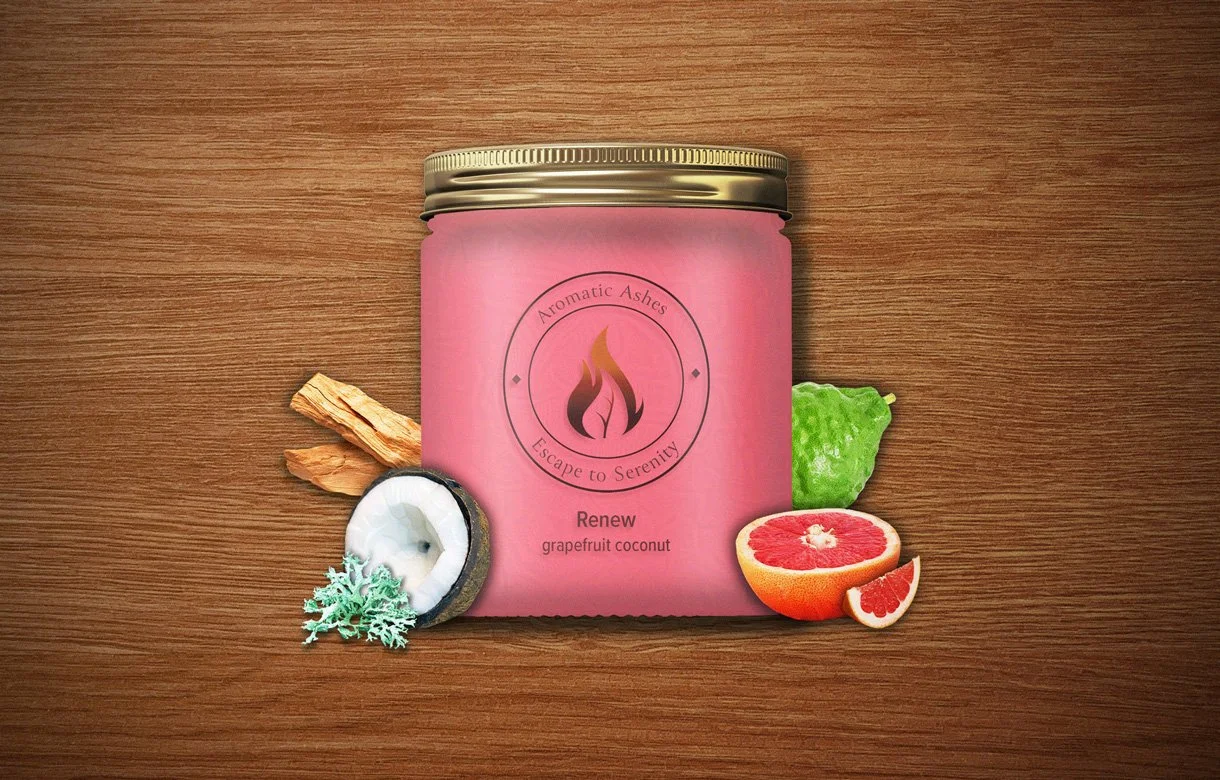 Aromatic Ashes is a concept for a vegan candle and incense company. Made with ethically sourced and organic ingredients, a commitment to fair trade practices, and eco-friendly packaging, Aromatic Ashes promises that its sensuous candles and incense sticks do not endanger the planet.