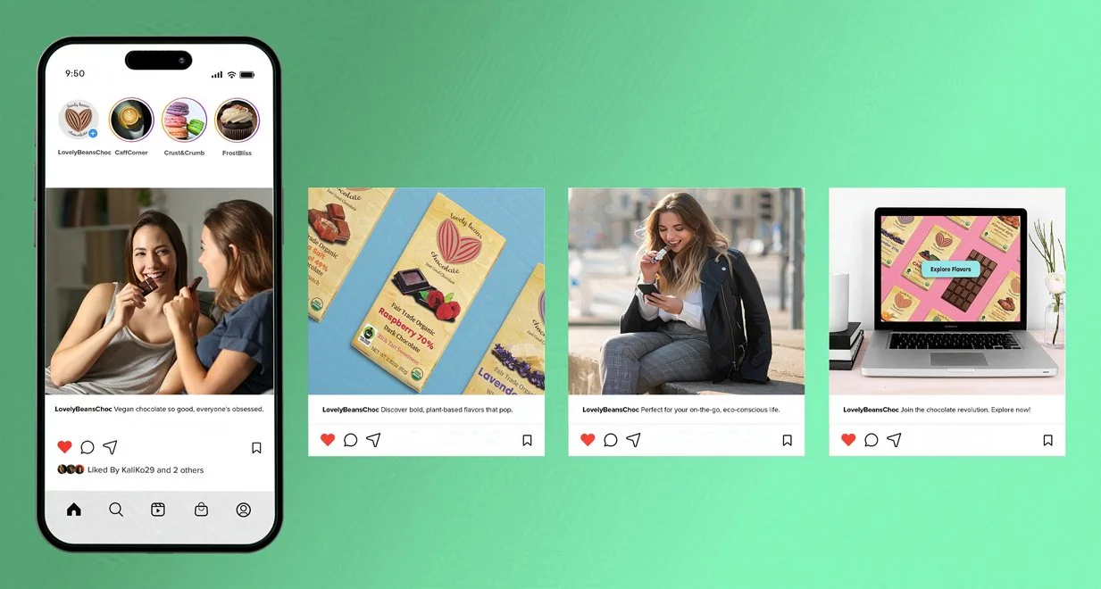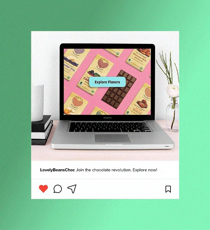 I also designed a series of eye-catching product images to promote each chocolate bar variety, ensuring they aligned perfectly with the packaging. Each image not only highlights the delicious chocolate but also features its enticing ingredients, creating a compelling appeal that draws in both loyal customers and new chocolate enthusiasts to indulge.