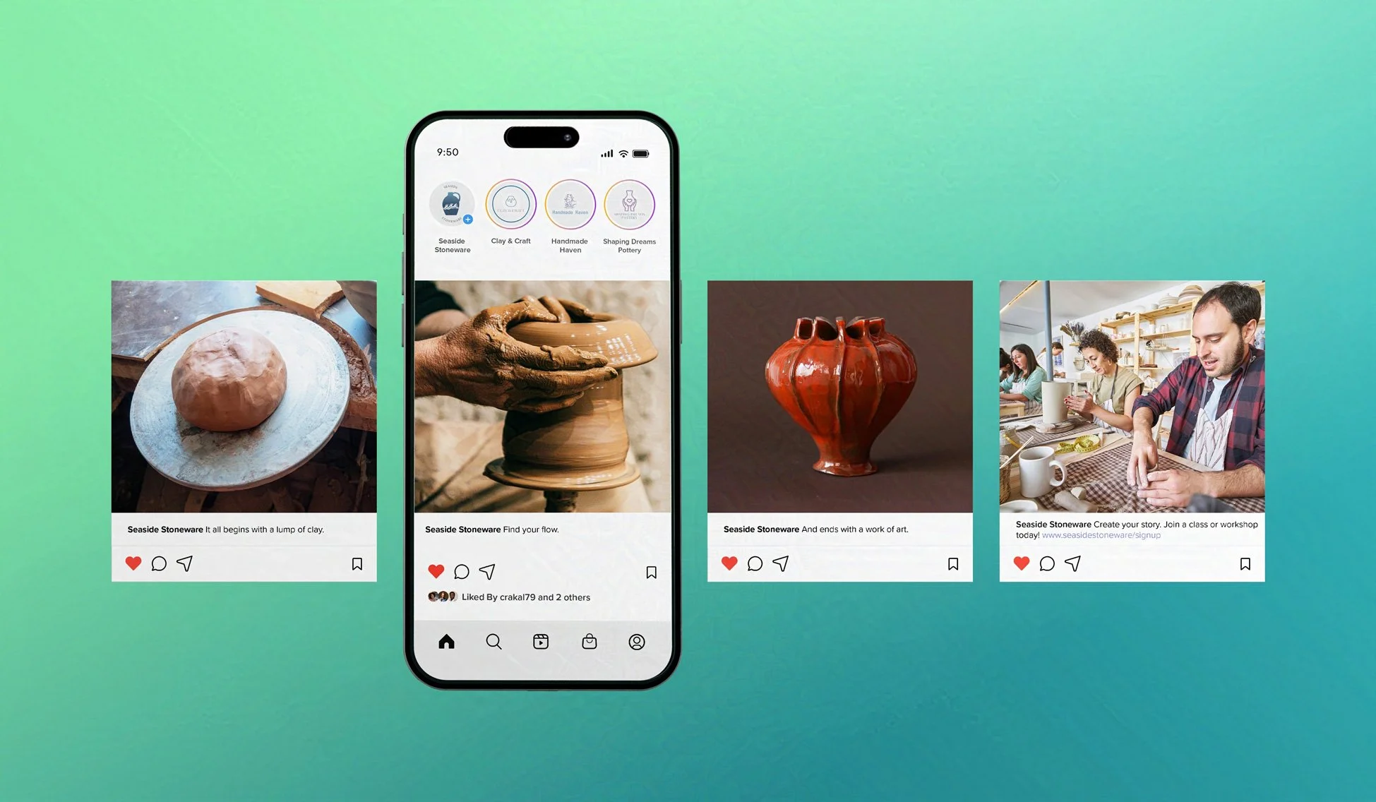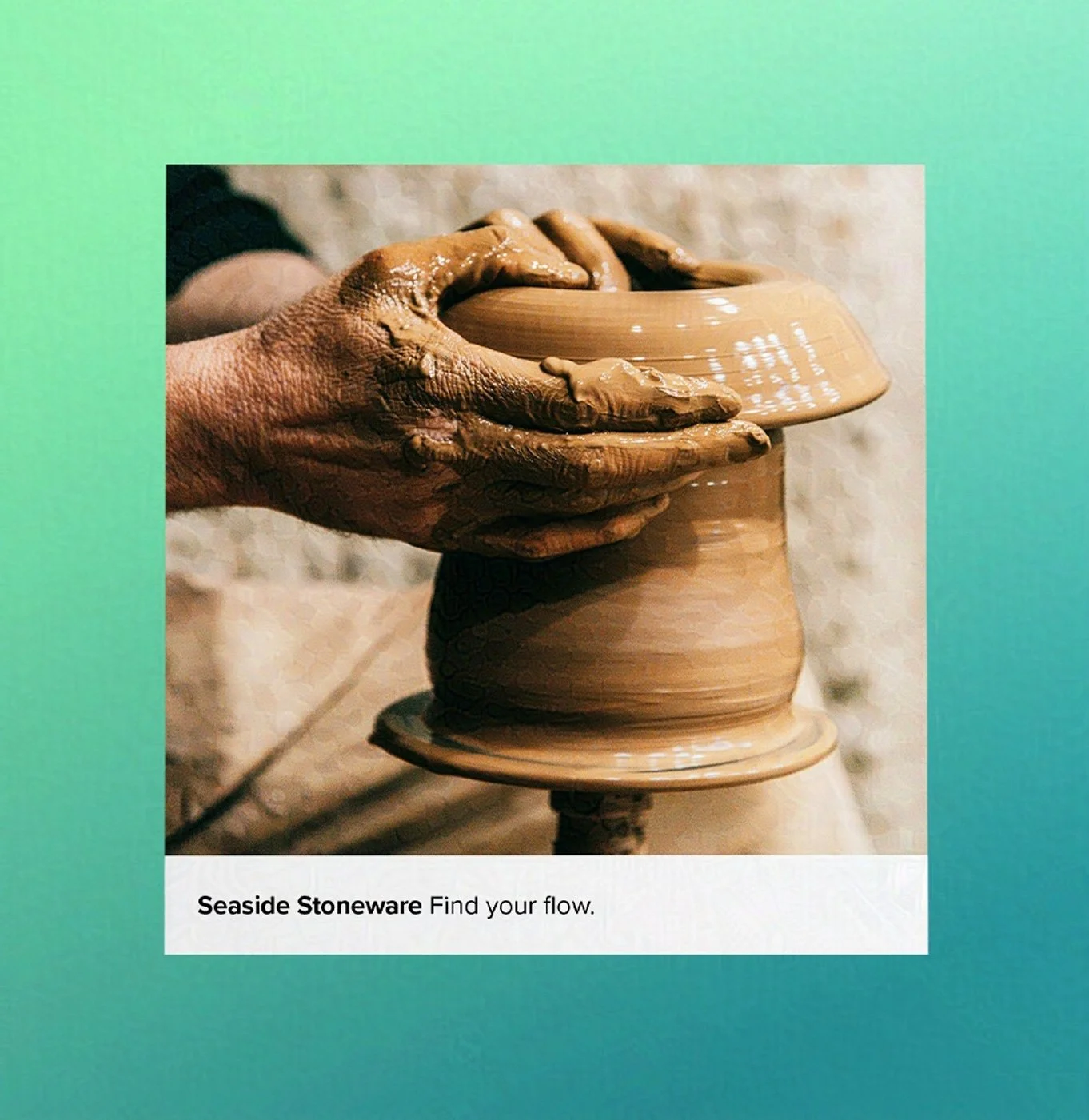 In creating the social media carousel Instagram ad campaign for Seaside Stoneware, I centered the narrative around the captivating process of pottery making. Each slide unfolds a chapter of this artistic journey, from the initial shaping of clay to the final finishing touches of a beautifully crafted piece. Through a series of vibrant images and engaging captions, I aimed to immerse viewers in the world of pottery, highlighting the skill and passion of the artisans. This visual storytelling approach not only showcases Seaside Stoneware's exquisite products but also invites the audience to connect with the artistry and dedication behind each handcrafted item, thereby appreciating the beauty and tradition of this timeless craft.