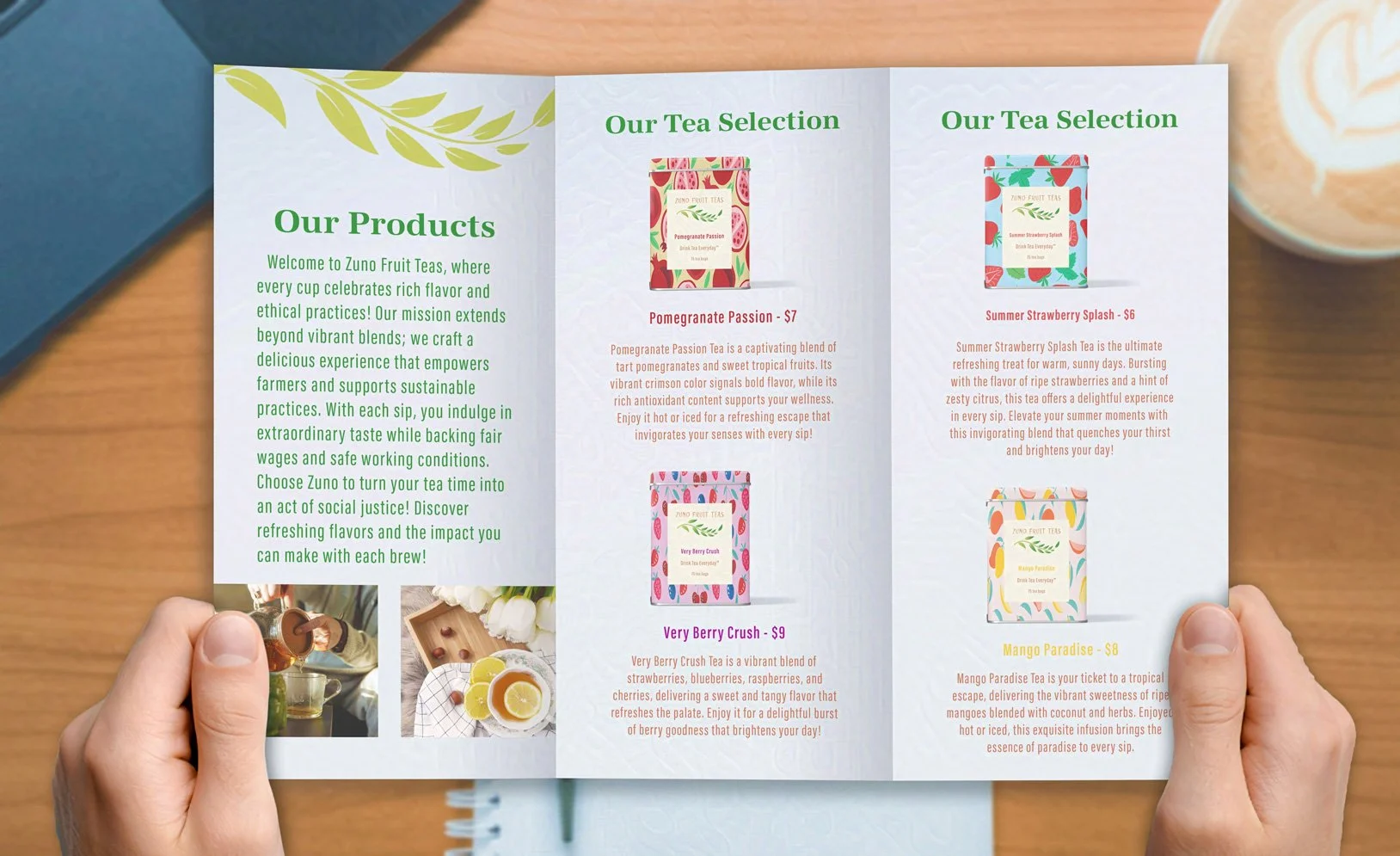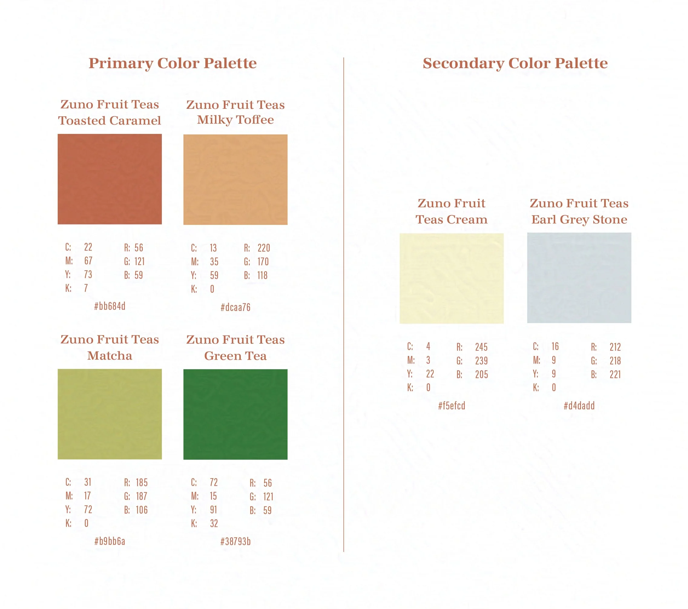 Zuno Fruit Teas is a concept for a tea company targeted towards a younger, modern demographic. At the core of its mission and values is a movement for their younger, contemporary audience seeking a better way to enjoy their beverages. Their teas are crafted from ethically sourced, organic ingredients, reflecting their unwavering commitment to fair trade practices and eco-friendly packaging. With Zuno Fruit Teas, you can indulge in a delicious cup of tea that nourishes both your body and the planet.