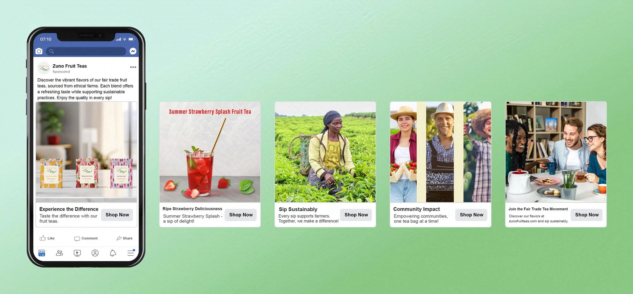 I designed a captivating series of product images to promote each tea variety, perfectly coordinating with the packaging. Each image not only highlights the exquisite tea tins but also showcases an inviting iced glass of each tea, emphasizing the premium ingredients inside. These striking visuals create a compelling allure that draws in both loyal customers and curious newcomers, inviting them to indulge in the delightful experience that our teas offer.